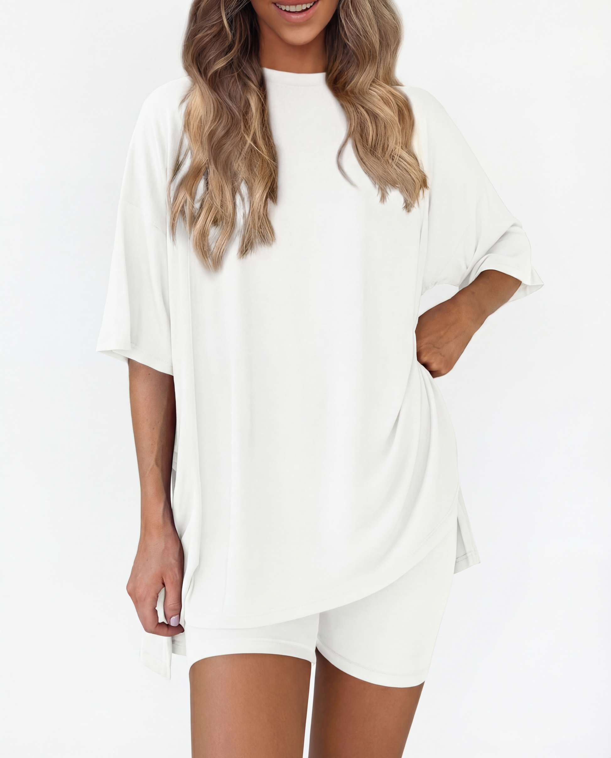 “This set is literally my uniform now. Oversized tee = instant comfy, and the shorts are stretchy without squeezing. Cute + cozy in one.”
